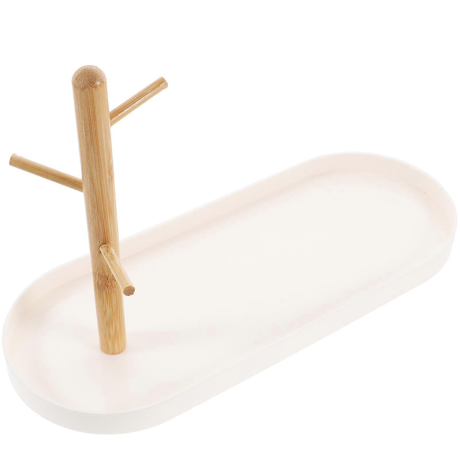 Elegant Jewelry Holder for Protection White ABS Wood Material Small Item Tray 5.9 Inch