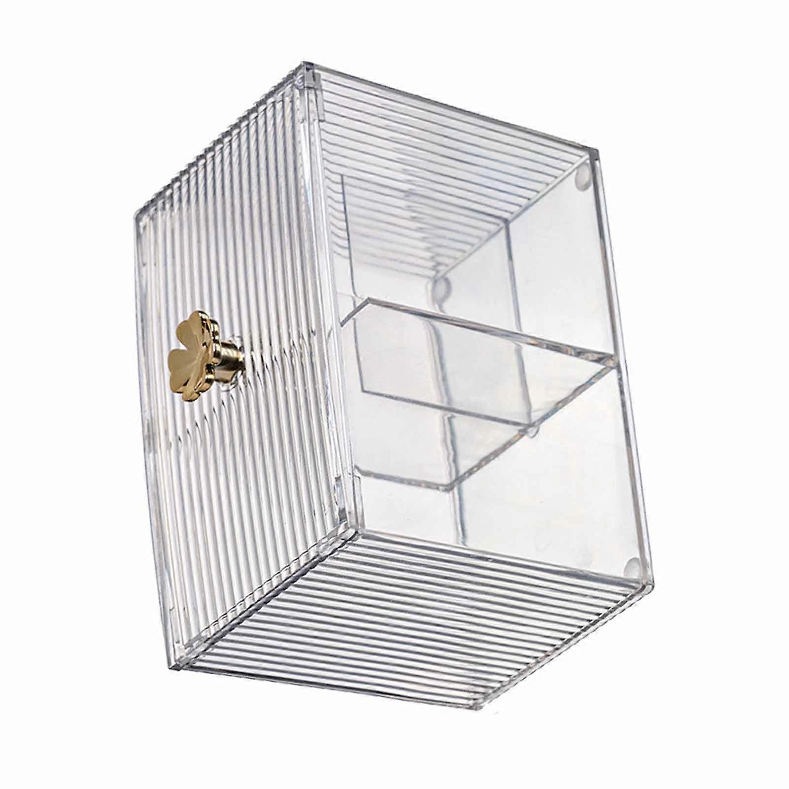 Cotton Swab Holder with Lid Cotton Swab Pad Holder 2 Grid Makeup Jewelry Organizer Portable Desk Storage Box