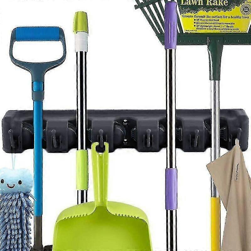Broom Mop Holder, Wall Mount, Mop Holder, Mop And Broom Holder Organizer, Wall Mount Rack Rake, Broom Mop Holder, Organizer Rail Wall Mount With 6 Hoo