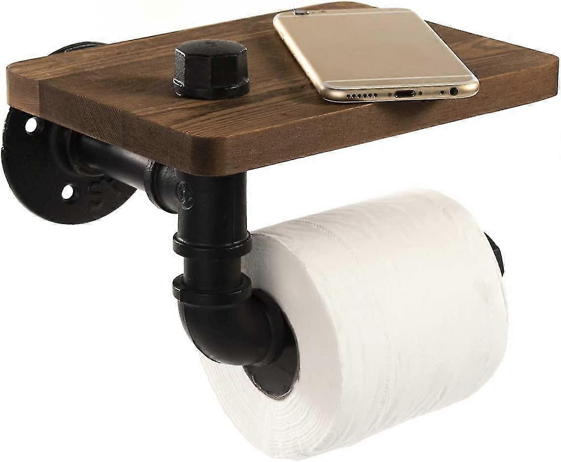 Industrial Toilet Paper Holder With Rustic Wooden Shelf And Cast Iron Pipe Hardware, Pipe Toilet Paper Holder For Bathroom, Washroom