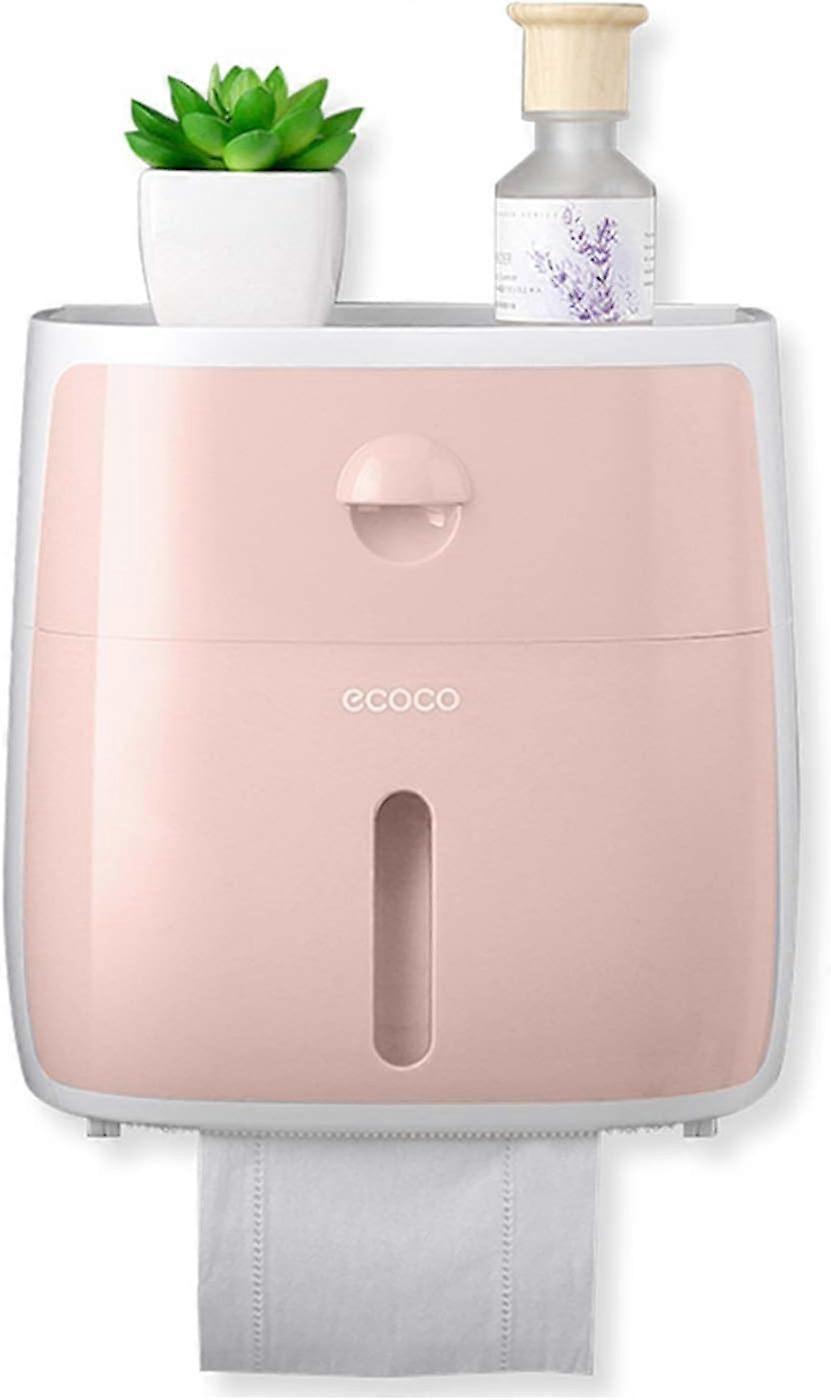 Strong Adhesive Toilet Paper Holder, No Drilling, Bath Fixtures, 3M Self Adhesive, with Waterproof and Dust Cover (Pink)