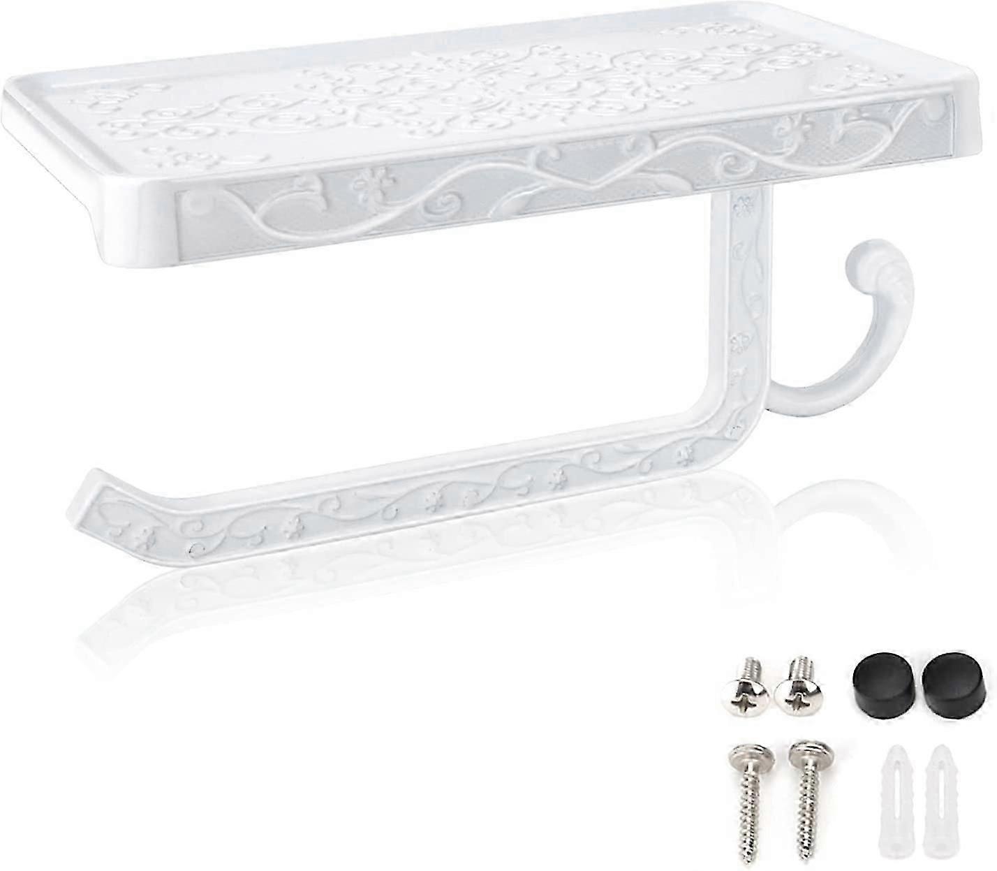 Wall Mounted Toilet Paper Holder, Toilet Paper Holder with Storage Platform for Bathroom WC, White