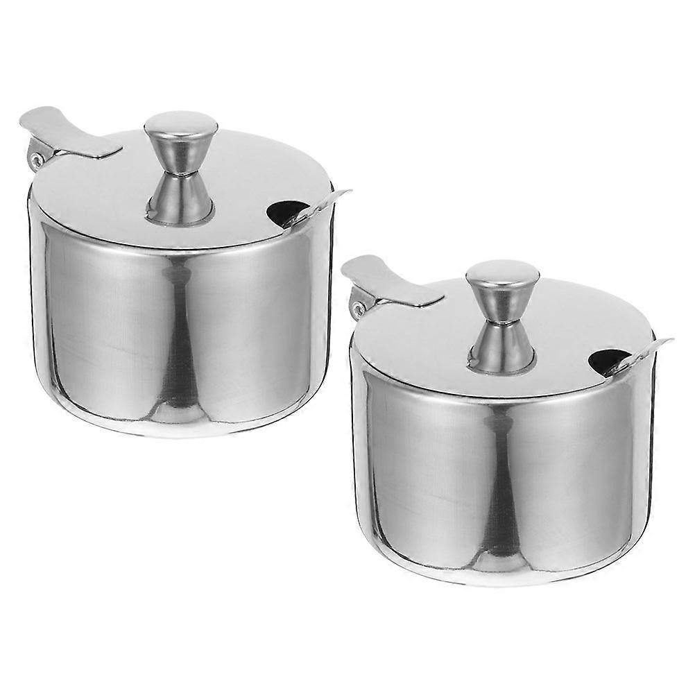 Salt and Spice Container Stainless Steel Sugar Bowl with Lid Spoon Home Kitchen Organization 2 Sets 9.30X9.30X8.50CM Silver