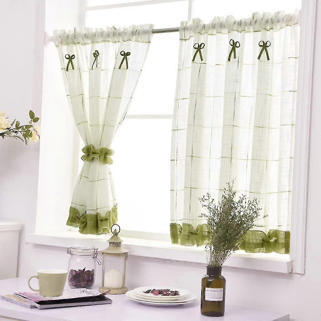 Linen Curtain Wall With Tiebacks, Cotton Blend, Green, Bxh 90x90cm
