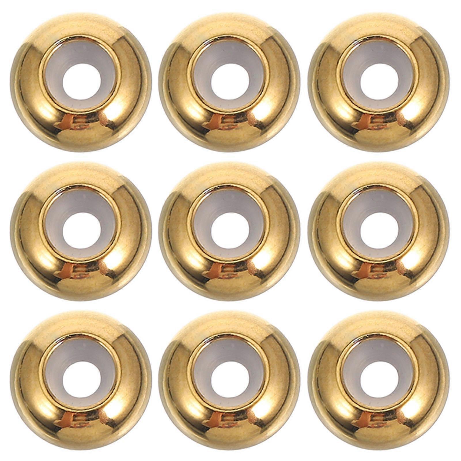 Elevate your jewelry collection with these rubber stopper positioning spacer beads, crafted from good stainless steel and featuring a proper fit. Good for adding of sophistication to your DIY bracelets, these beads ensure your charms and pendants stay securely in place. Features - Color: Golden -Material:Stainless Steel, Rubber Ring - Size: 0.80X0.80X0.40cm/0.31X0.31X0.16in - : These spacer beads are made of good material, and safe, with smooth edges, can serve you longer -DIY Jewelry: You your own favorite small objects and jewelries, better improve your hands-on ability -Various Crafts: The spacer beads are very useful accessory for jewelry making and various project, very lovely -Beautiful Look: Can add a beautiful look to your jewelry, make them become more unique and charming -Share For Friends: You can send these beads to your lover, family or friends who love DIY crafts making to share with them joy Package list: 10 x Spacer Beads