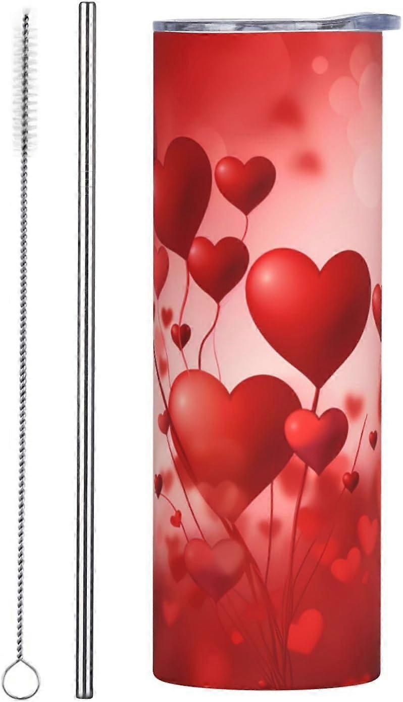 Love Heart Shape Balloon Stainless Steel Insulated Tumbler 20 OZ, Valentines Day Coffee Mug Cup with Splash-Proof Lid and Straw for Car Home Office Ou