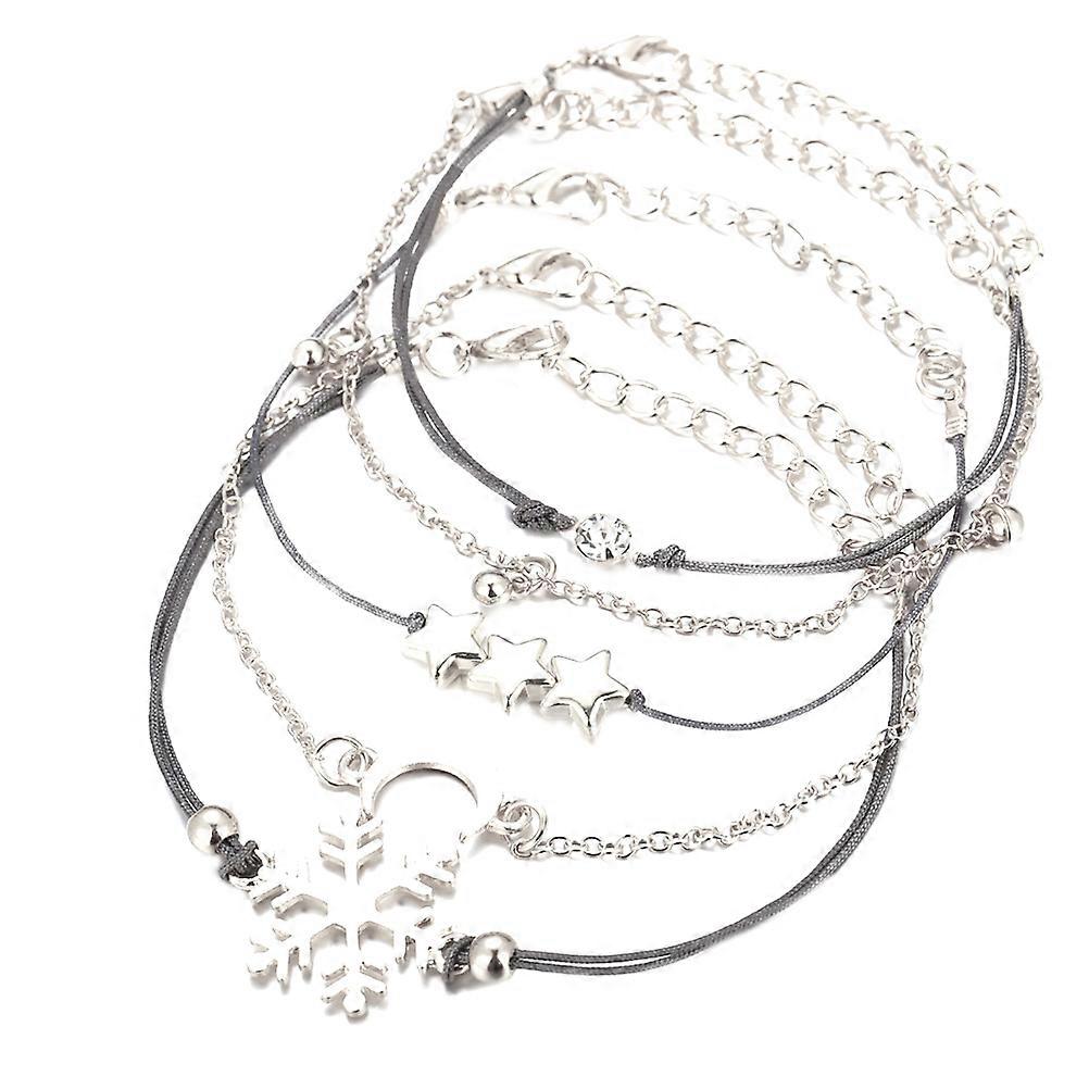 This set of bracelet are made of alloy, which is very strong and sturdy. It is suitable for casual wear for girls, teens and , and also suitable for all seasons. Great for birthday, wedding, Valentine’s Day, Christmas. Features - ColorAssorted Color - Material: Alloy. - Size: Approx. 19x1x1cm. - Fashion and classic: these bracelet has star, snowflake, moon and rhinestone charm decor, which is very classic style. - All-match: It is simple and durable, easy to match all kinds of dress. - Unique design: Its design is special, and very for both . - Warm Tip: Dear buyer, Due to lighting effect,monitor’s brightness,manual measurement and etc, there could be some slight differences in the color and size between the photo and the actual item. sincerely hope that you can understand! Thank you! Package list: 5 x bracelets