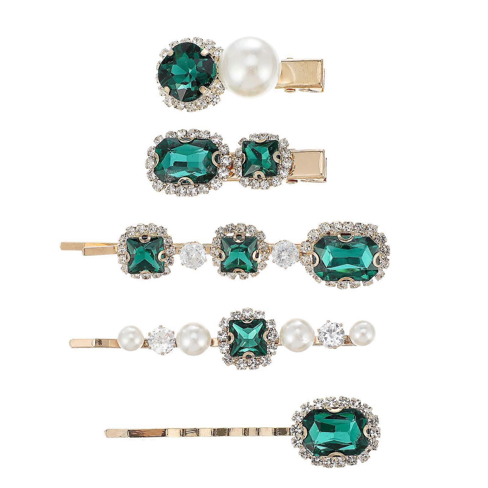 Rhinestone Crystal Barrettes Stylish Women Hair Barrette Special Occasions Rectangular Shape Firm Hair Holding 5Pcs