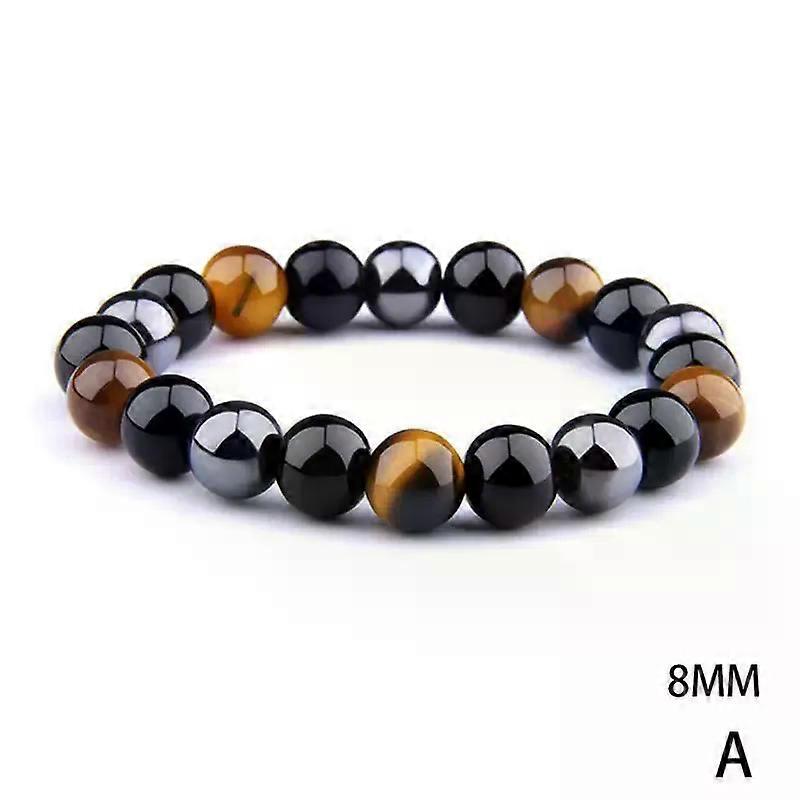 Obsidian Tiger Eye Stone Bracelet Unisex 8mm Natural Round Gemstone Beads Beaded Therapeutic Crystal Bracelet Bless Peace and Bring Good Luck