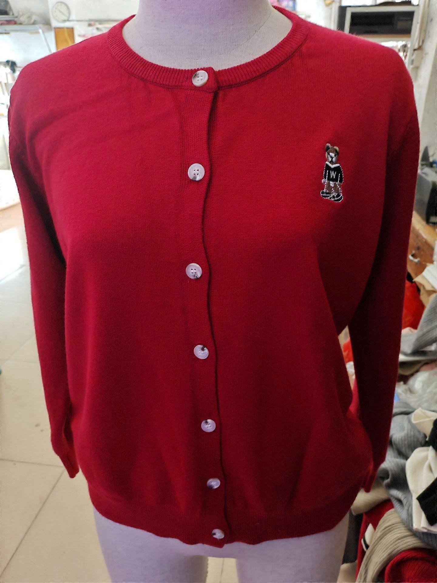 Plus Size Women's Autumn And Winter Bear Embroidery Knitwear Cardigan Round Neck Thickened Sweater Coat 0.00Kg