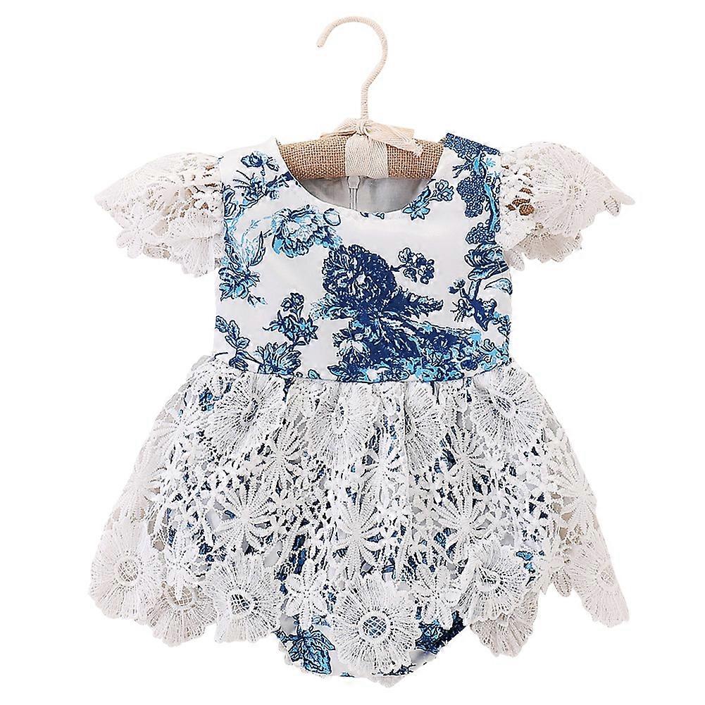 Newborn Infant Baby Girl Summer Printed Lace Edge Lotus Leaf Edge sleeve Jumpsuit Clothes (70)