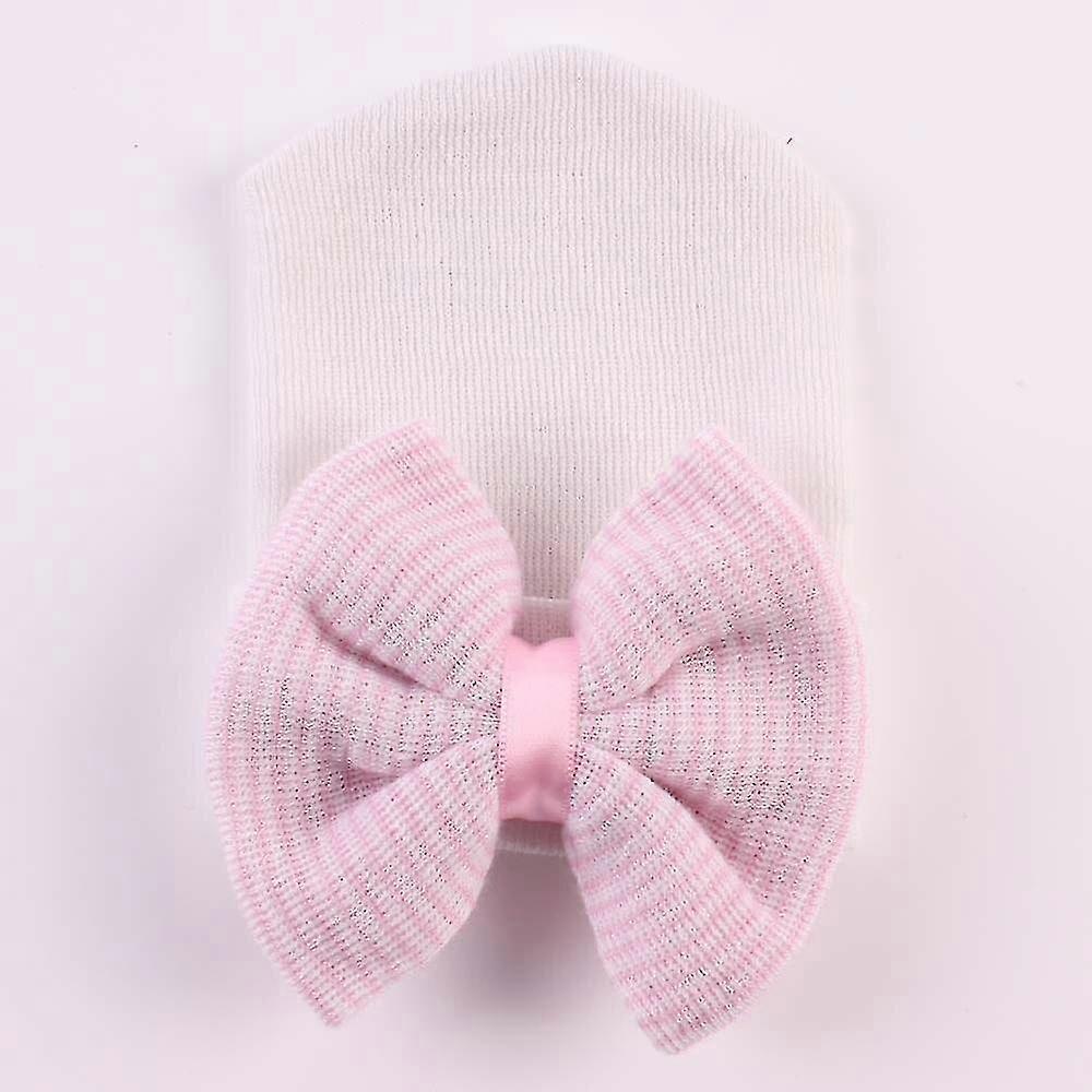 Newborn Baby Hat Toddler Baby Warm Hats Cotton Striped Caps Soft Hospital Pink White Boys Girls Bow Beanies For Newborn 0-6m Chumian