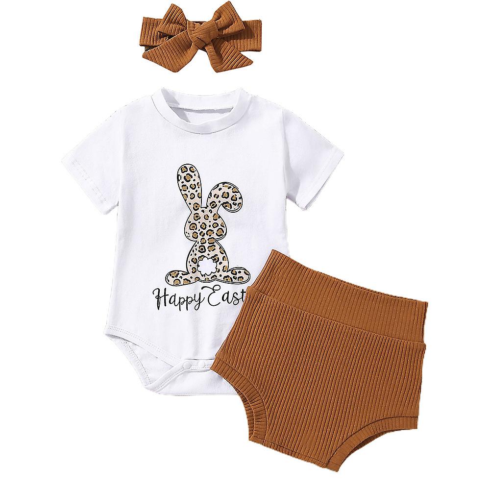 Newborn Baby Easter 3piece Clothes Set Short Sleeve Romper+ Bikini Shorts Pants+headband