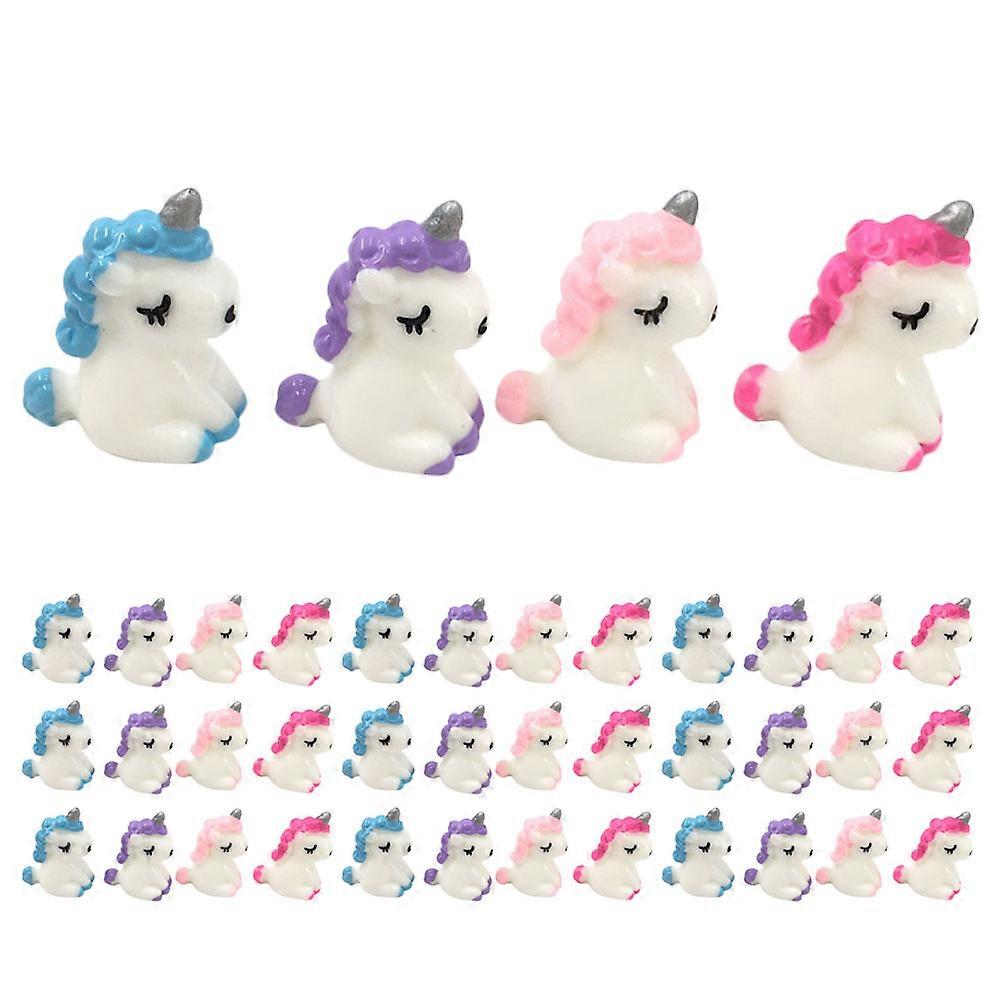 Garden Decoration Mini Unicorn Figurines Rose Red Resin Miniatures 40Pcs