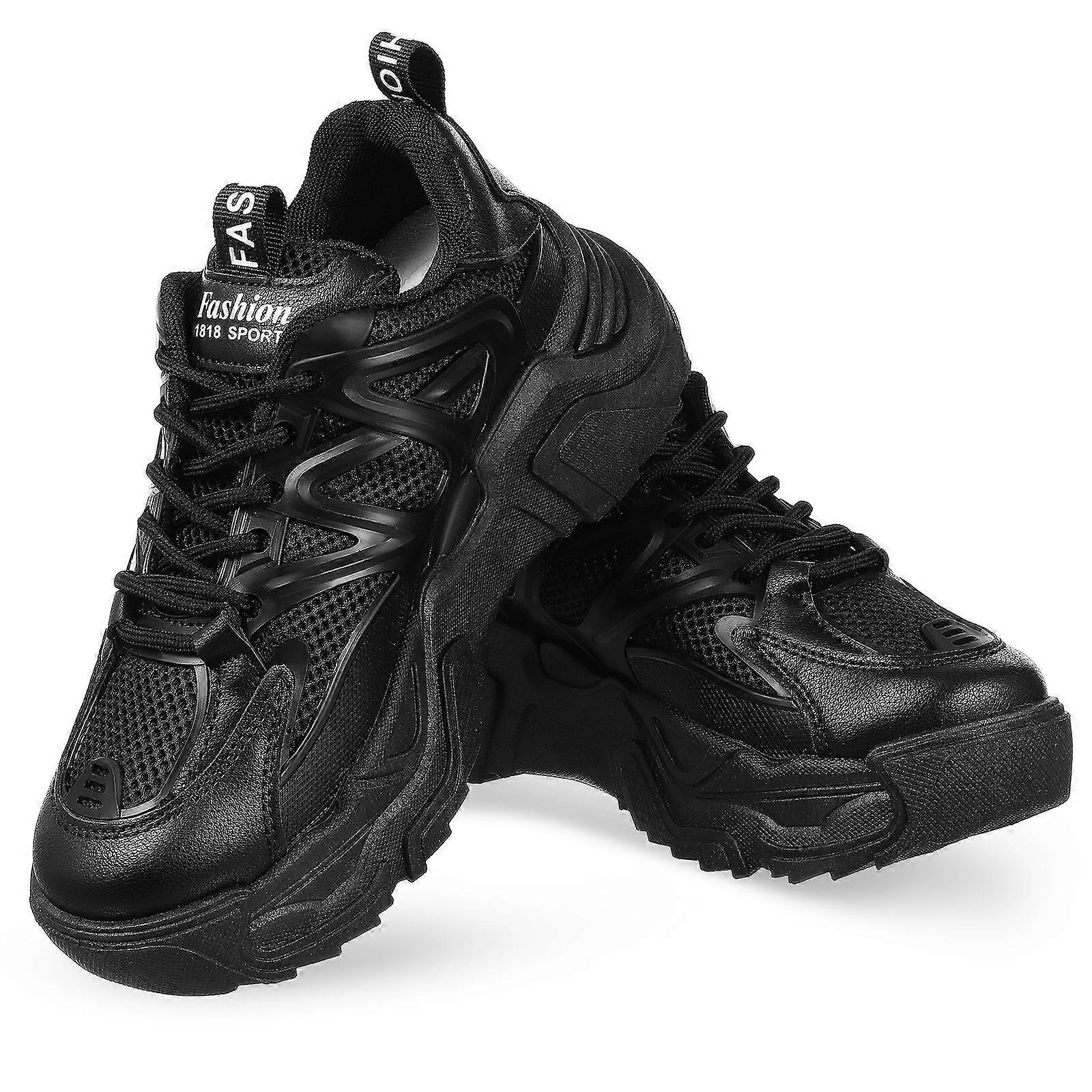 Chunky Sneakers Women Classic Retro Lace-Up Design Durable Non-Slip Soles Size 40 Black 1 Pair