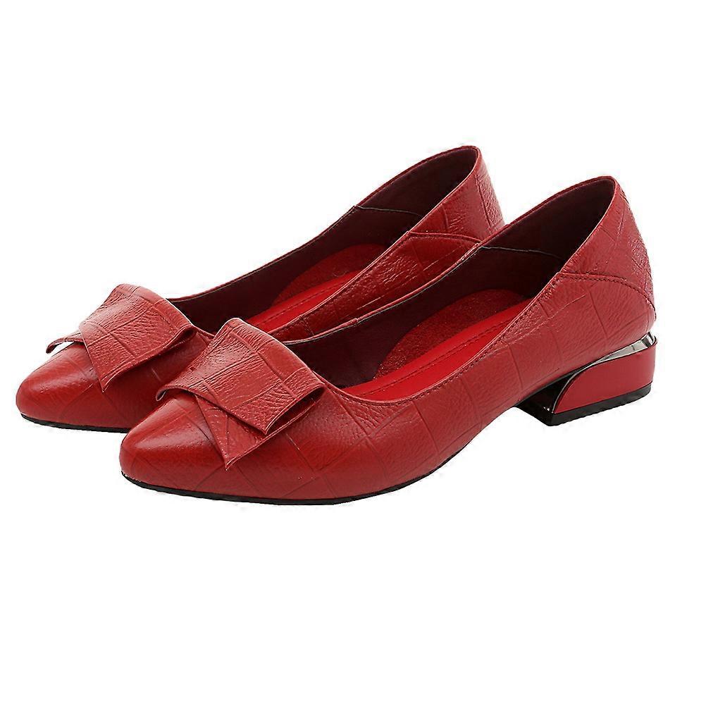 Chunky Heels Pointed Shoes Women Casual Breathable Easy to Wear and Take Off Red Size 37 1Pair