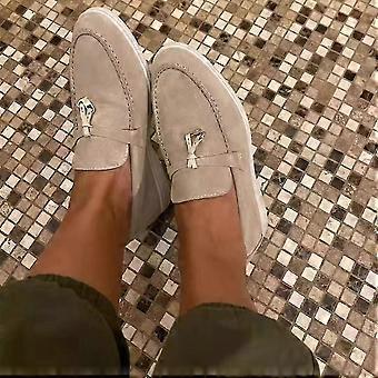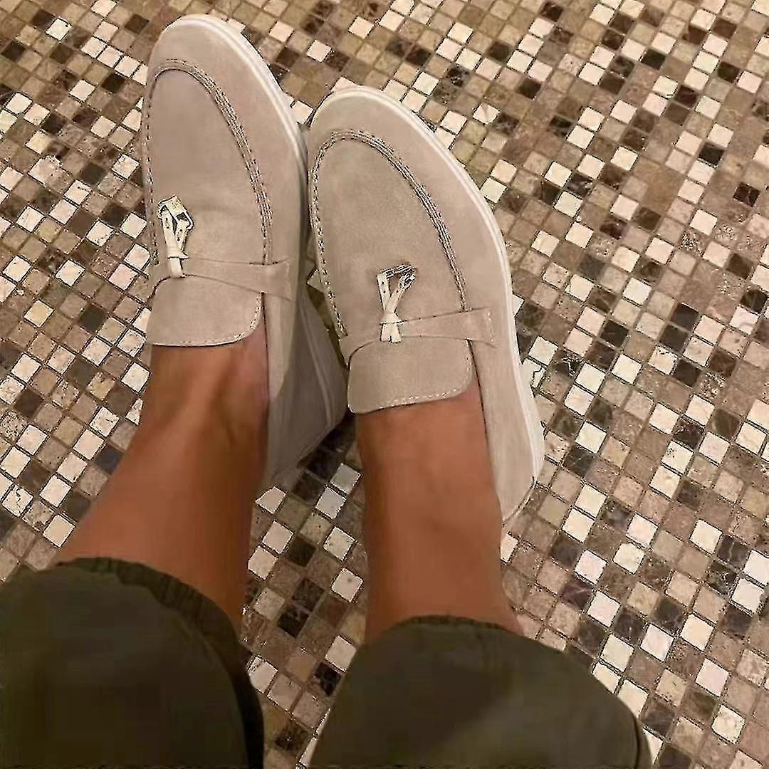 Women's Suede Casual Moccasin Loafers - Comfortable Soft Sole Flat Shoes with Lock Beanie, Suitable for Plus Sizes(Gift Of K)35-Beige