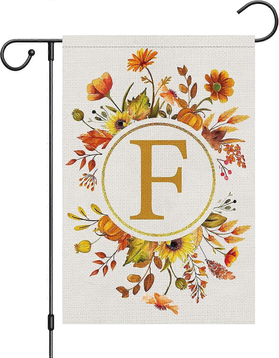 Monogram Letter F Fall Initial Garden Flag 12x18 Double Sided Burlap Small Vertical Welcome Floral Sunflower Family Last Name Flag Outdoor Outside Dec