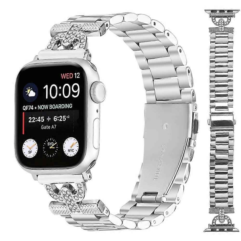 Watch Strap Compatible For Apple Watch Series 10 Ultra 9 8 7 SE 6 5 4 3 2 1 46mm 49mm 45mm 44mm 42mm D-Shape Rhinestones Decor 3-B