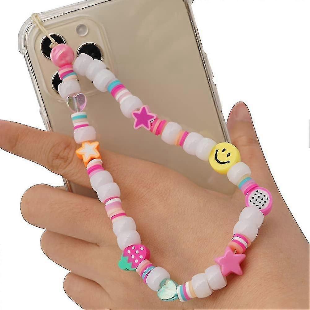 Pearl Wrist Strap For Phone, Smiley Face Universal Mobile Phone Lanyard Beads Wrist Chain For Women Girls Bohemian Pearls Charm Mobile Pho RVK