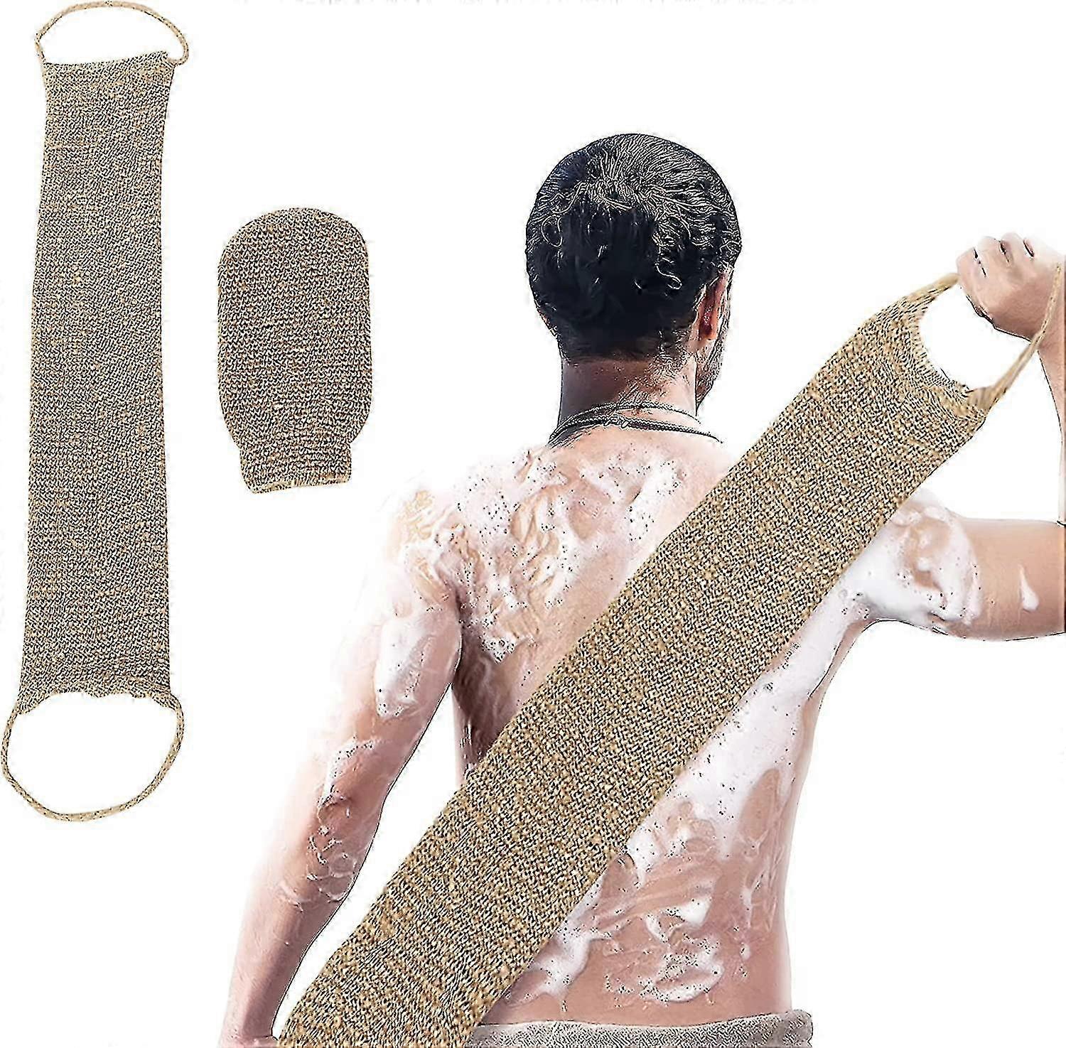 Exfoliating Sponge Back Wash Strap, Natural Hemp Exfoliating Back Band, Massage Belt Back, Body Scrub Exfoliating Glove, For Back Body Bath Shower Men
