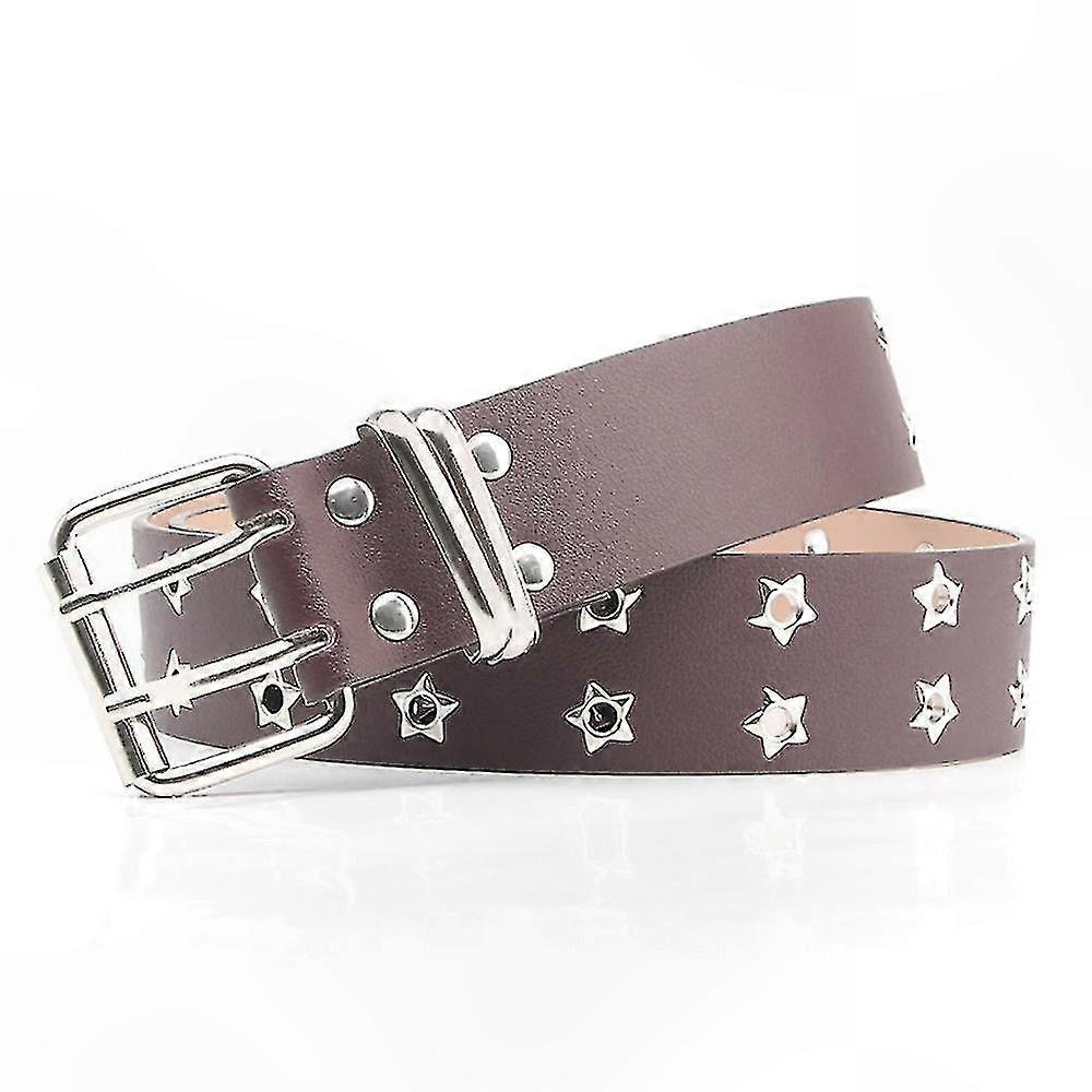 Wide 1.5 Inch Unisex Punk Style Leather Belt with Double Grommet for Jeans and Casual Wear