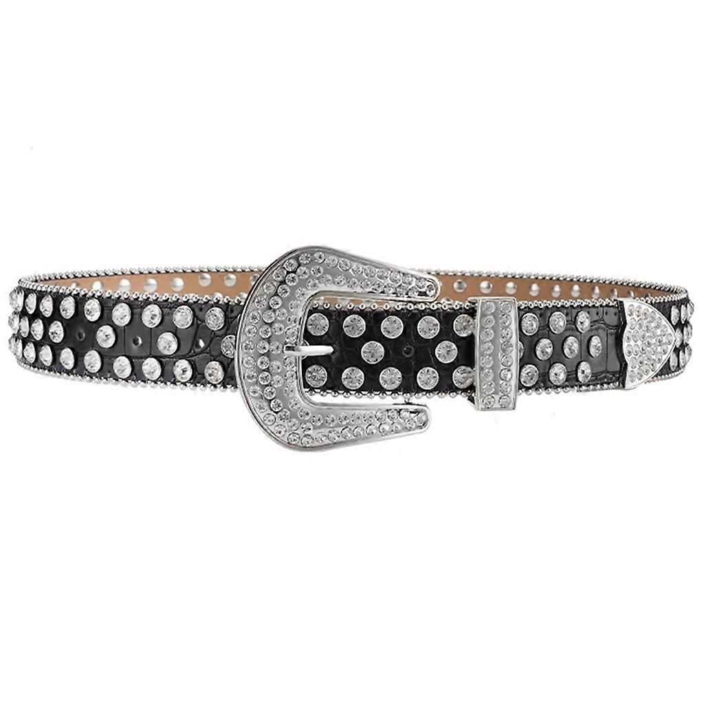 PU Leather Belt for Teenager Girl Female Rhinestone Shiny Belt Bling Waist Belt