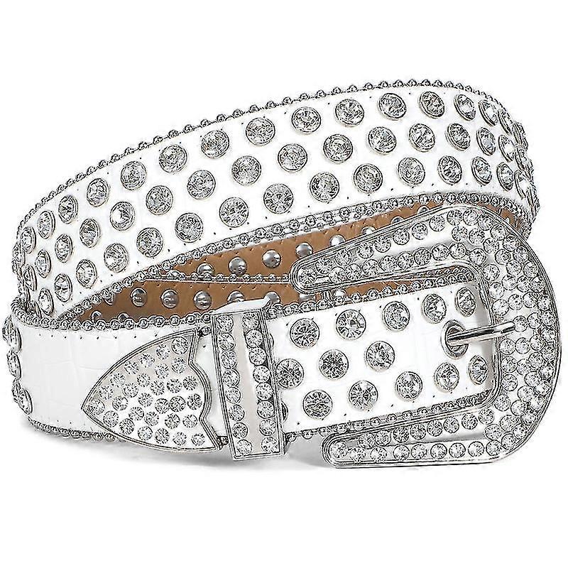 Western Rhinestone Belt For Men Women, Cowgirl Bling Studded Leather Belt For Jeans Dress