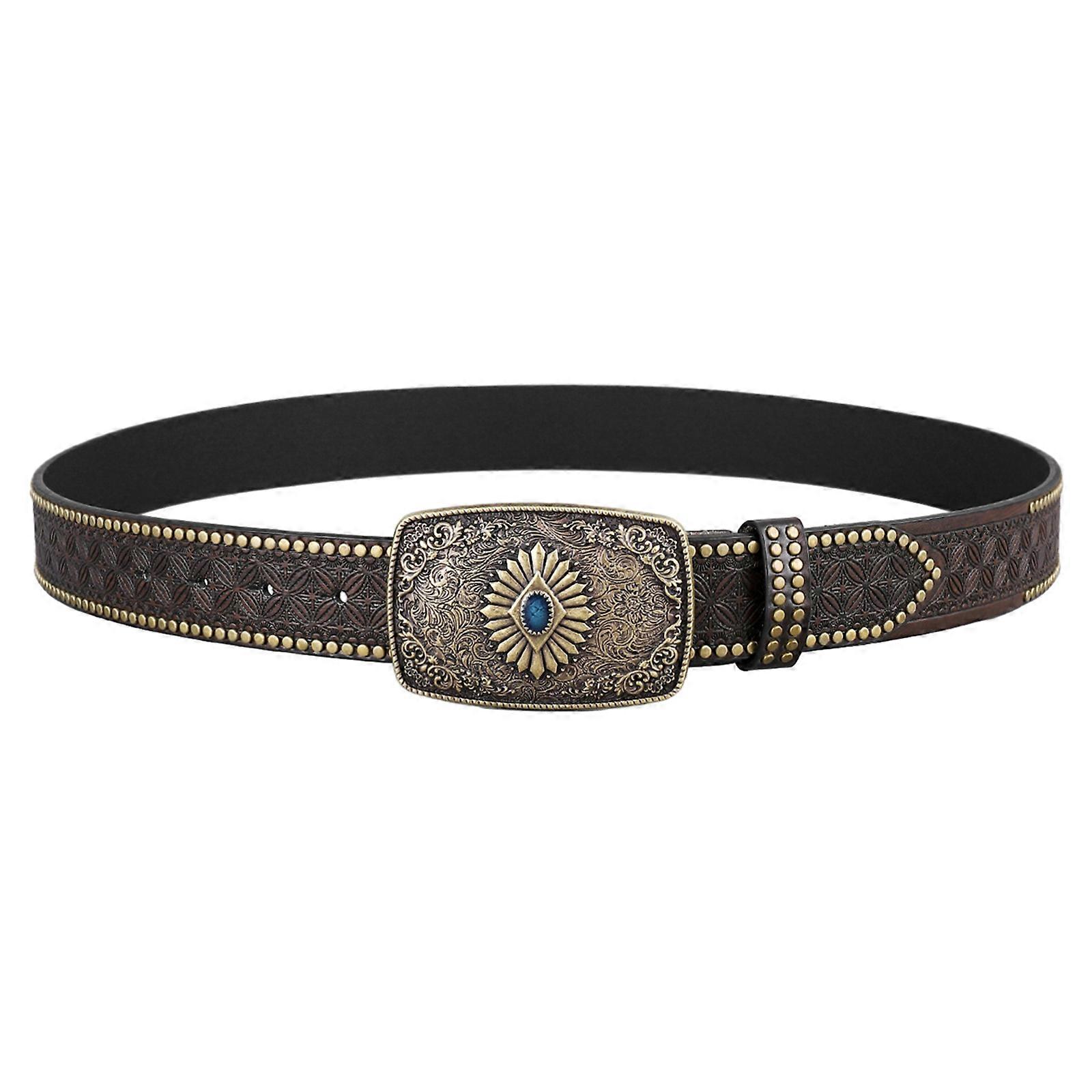 Western Engraved Tooled Leather Belt Strap or Belt,Western Cowboy PU Leathers Belt Men Waist Strap for Jeans
