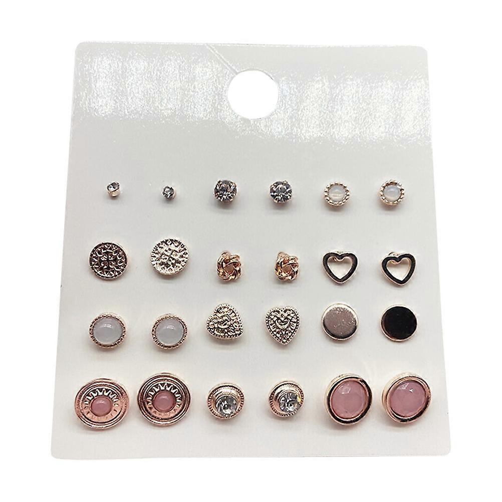Earrings Pack Baroque Style Stud Earrings Dates And New Year Atmosphere 1x1cm Round Stones 12 Pairs