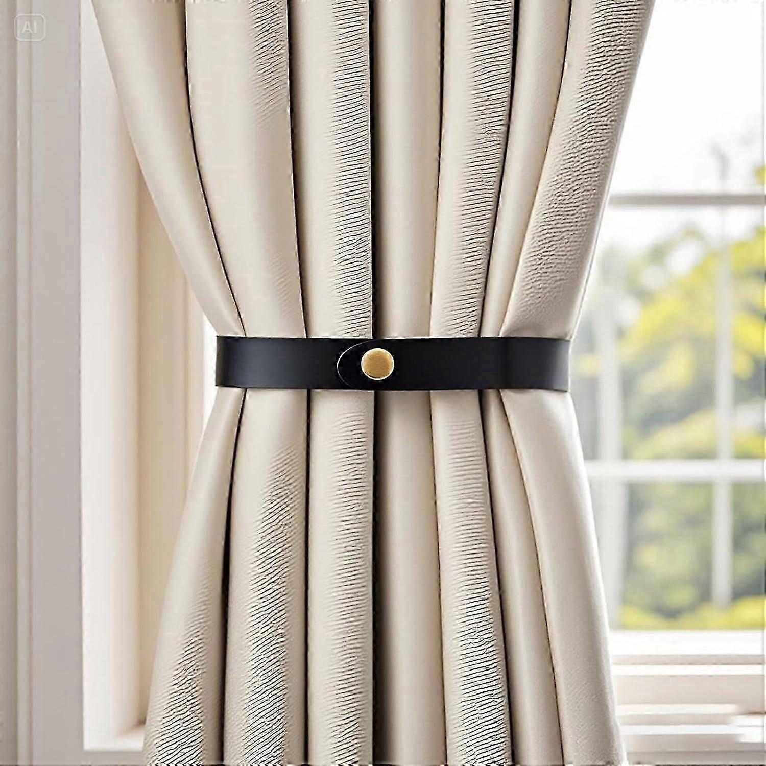 Pack Black Faux Leather Curtain Tiebacks Ring Clips for Home Hotel Window Curtains Creative Decoration Modern Minimalist Curtain Tiebacks