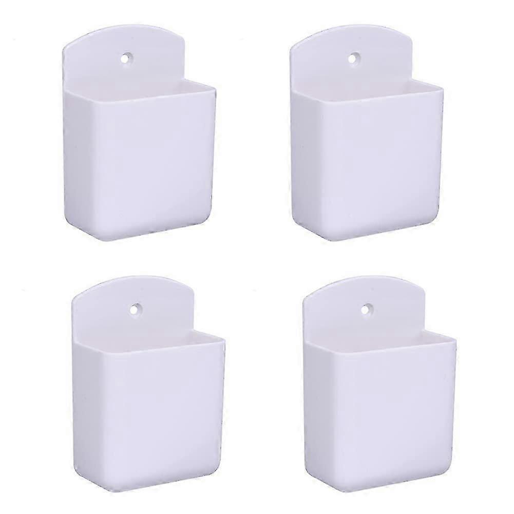 Pack of 4 White Remote Holders Remote Control Holder Wall Mount Media Storage Box for Home Office Bedroom Parlor Self Adhesive Atorage Box