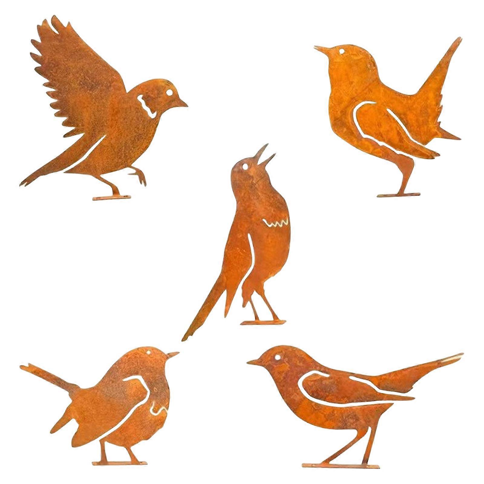 Pack Of 5 Metal Bird Shape Silhouettes Garden Decoration Bird Sculpture with Screw Fixings for Spring Tree Adornment