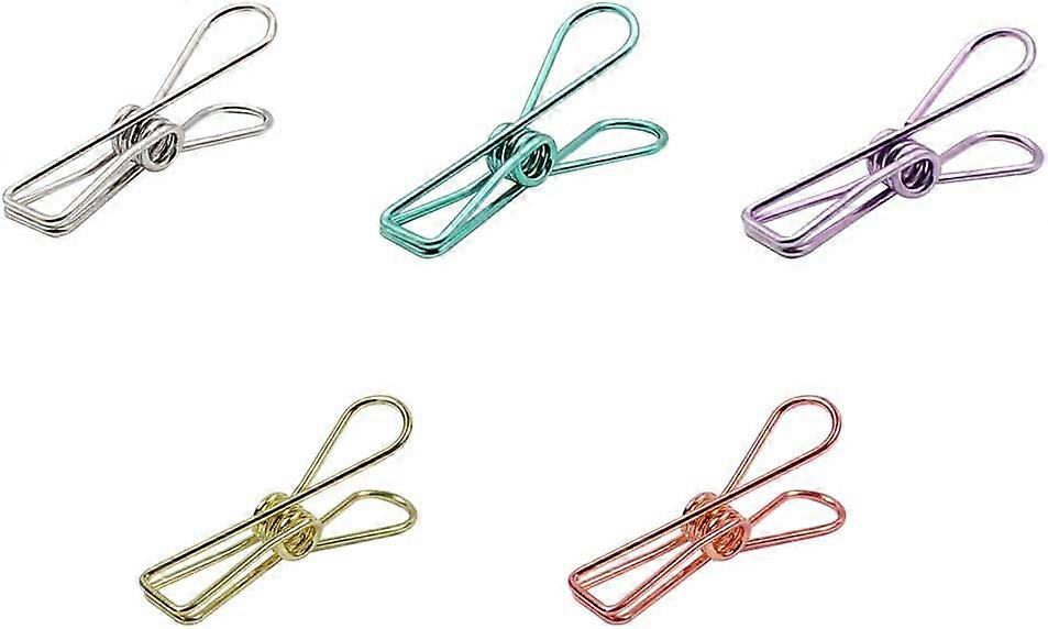 Set of 50 versatile metal brackets. Size: 32 * 7 mm Versatile clips for clotheslines, bag closures, paper clips, etc. Press to open slightly, release for a firm grip. Top quality materials and exquisite craftsmanship, it is excellent quality. Packaged in a reusable clear tub to keep your desk or desk drawer organized. Product description Color: 5 colors Versatile clips, creative design, premium materials and exquisite workmanship, this is excellent quality. Versatile clips for clothesline, bag closures, paper clips, for chip bags, clothespins, bookmarks, hanging signs, briefcases and much more! Package includes: 50 * brackets 10 * rose gold 10 * gold 10 * silver 10 * purple 10 * green Size: 32 * 7 * 14mm