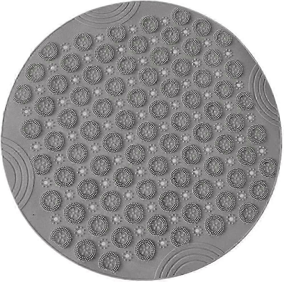 Non-Slip Round Shower Mats Mildew Resistant Bath Mats with Suction Cups Textured Rubber(Grey)
