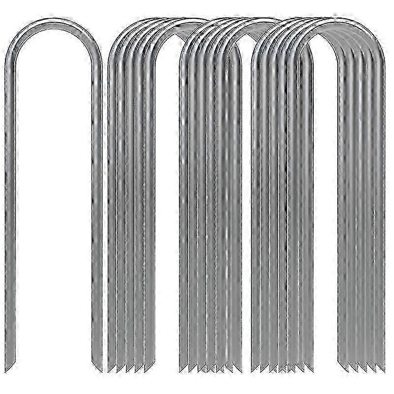 Ground Stakes, Garden Staples Rebar Stakes Galvanized Steel U Hooks Heavy Duty Ground Anchor for Camping Trampoline Fence 10pcs