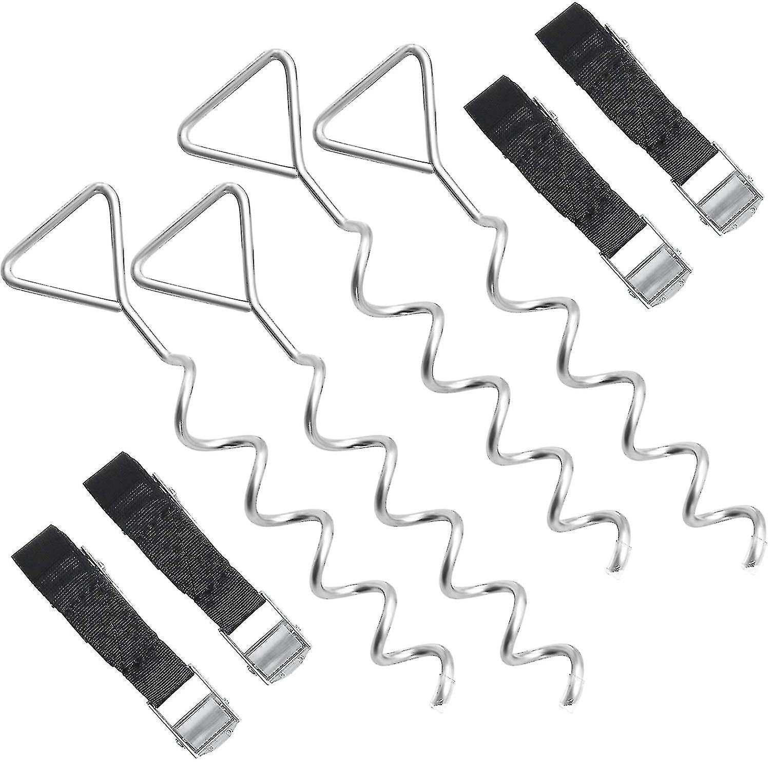 Spiral Trampoline Stakes, Ground Anchor Kit With Galvanized Iron Stakes, Polyester Straps, Steel Buckles
