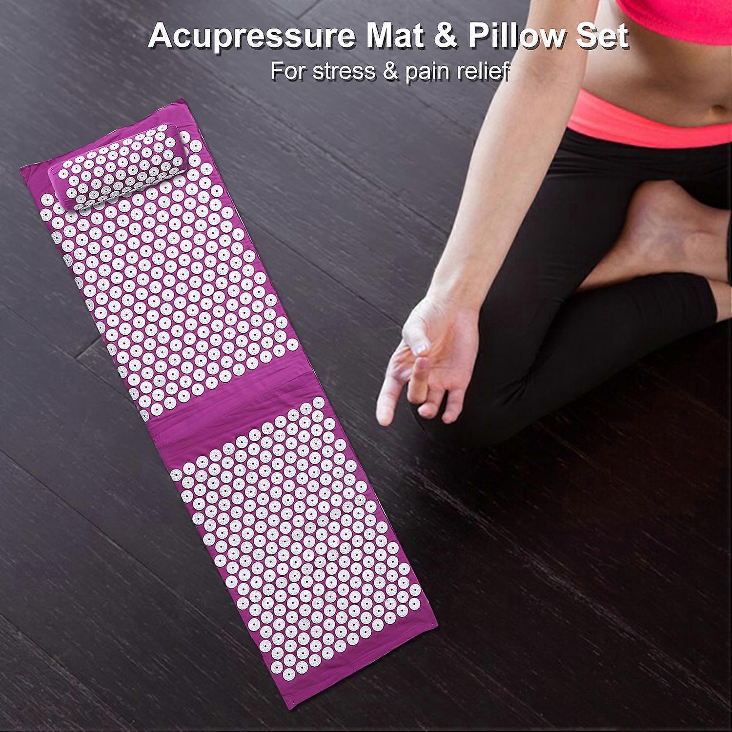 Acupressure Mat & Pillow Set for Stress Pain Relief Health Care Yoga Mat Acupuncture Massage Mat Cushion with Cloth Bag