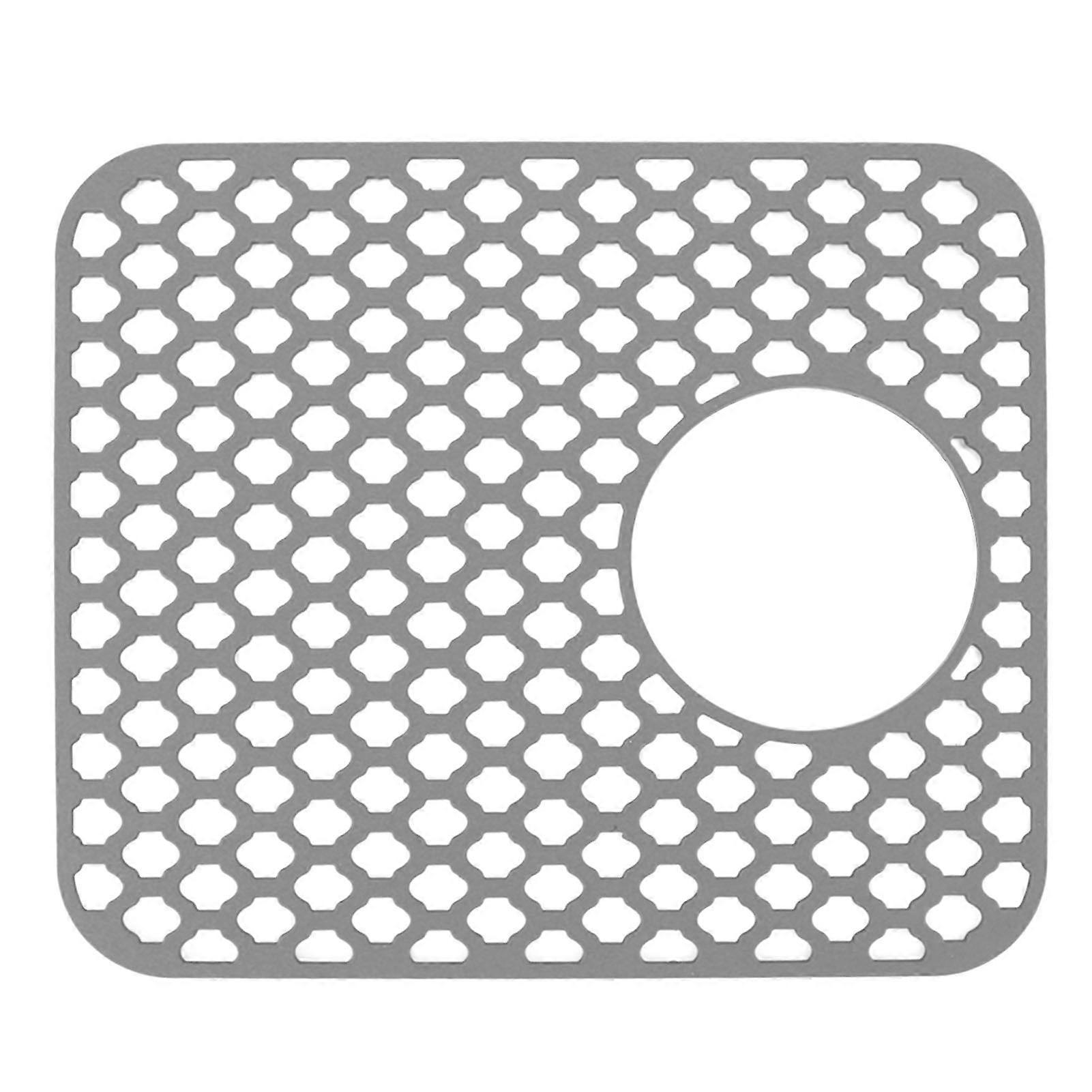 Sink Mat Silisone Protector with Side Drain Hole Anti Slip Scratch Easy Maintenance Sink Grid for Kitchen Home Grey