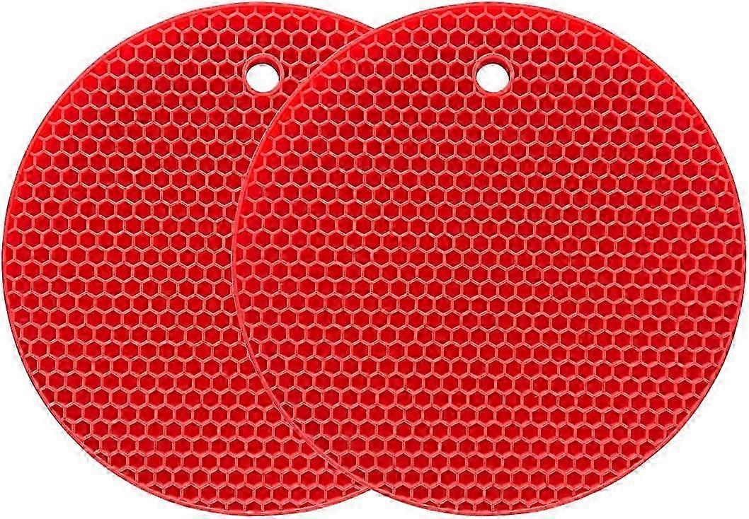 Silicone Trivet Mat Heavy Duty Multi-Purpose Drying Mat,Waterproof,(2 Pack) Non-Slip,Durable(Red)