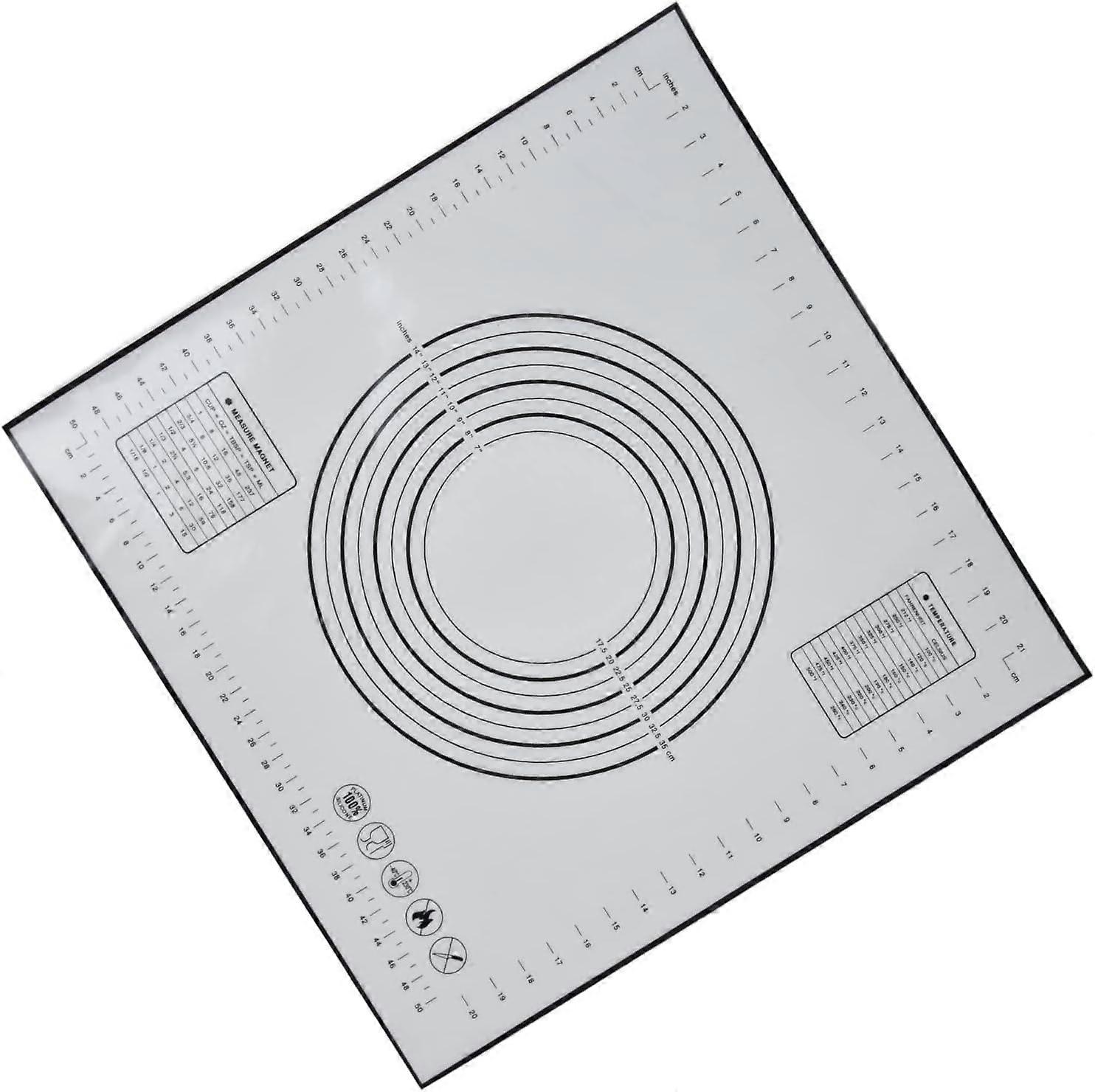 Silicone Pastry Mat, Extra Thick Non Stick Baking Mat 60 x 60cm 23.6 x 23.6in Fondant Mat with Measurement for Kneading Baking Cooking Dough Rolling (