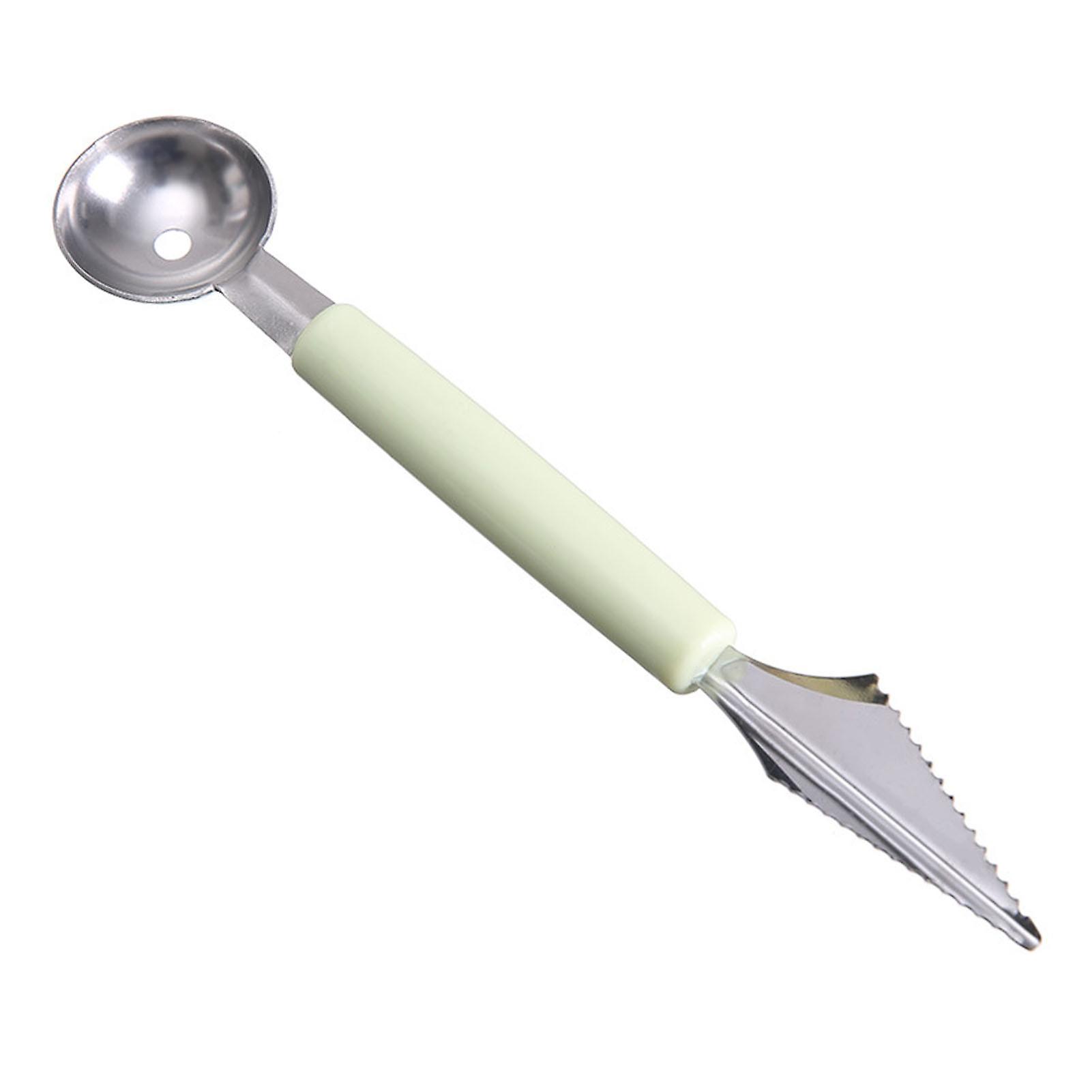 Fruit Ball Digger Double Head Stainless Steel Fruit Digging Spoon Double Sided Fruit Melon Baller Spoon Watermelon Digger Ice Cream Spoon Nordic Green