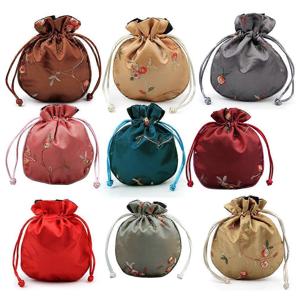 Jewelry Pouches Chinese Style Money Bag Drawstring Closure Travel Use Wedding Party 6Pcs