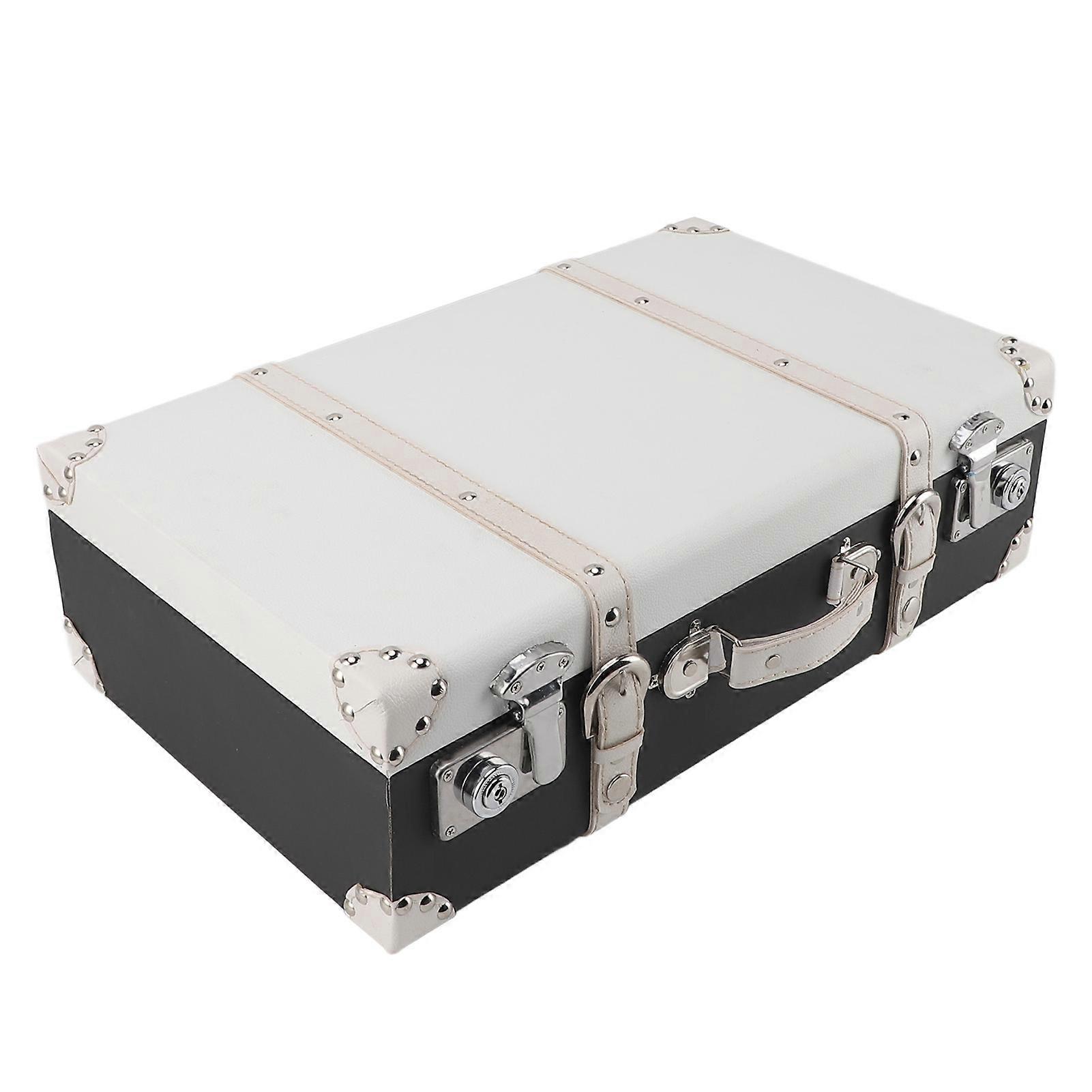 Wood Decorative Suitcases PU Leather European Small Suitcase Decorative Box with Straps for Travel White Black