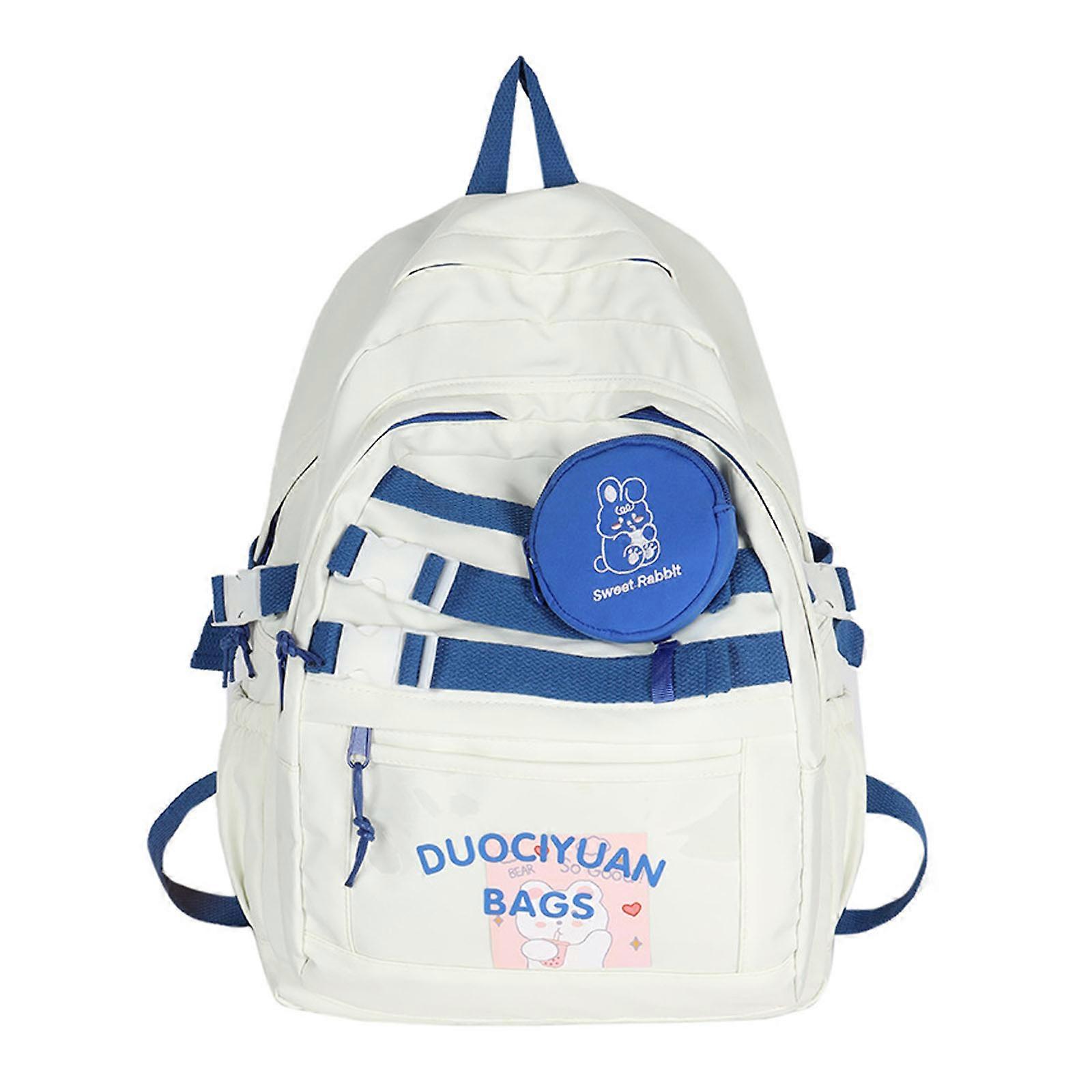Cute Women Backpacks Multi-Pocket Nylon School Backpack for Student Female Girls White