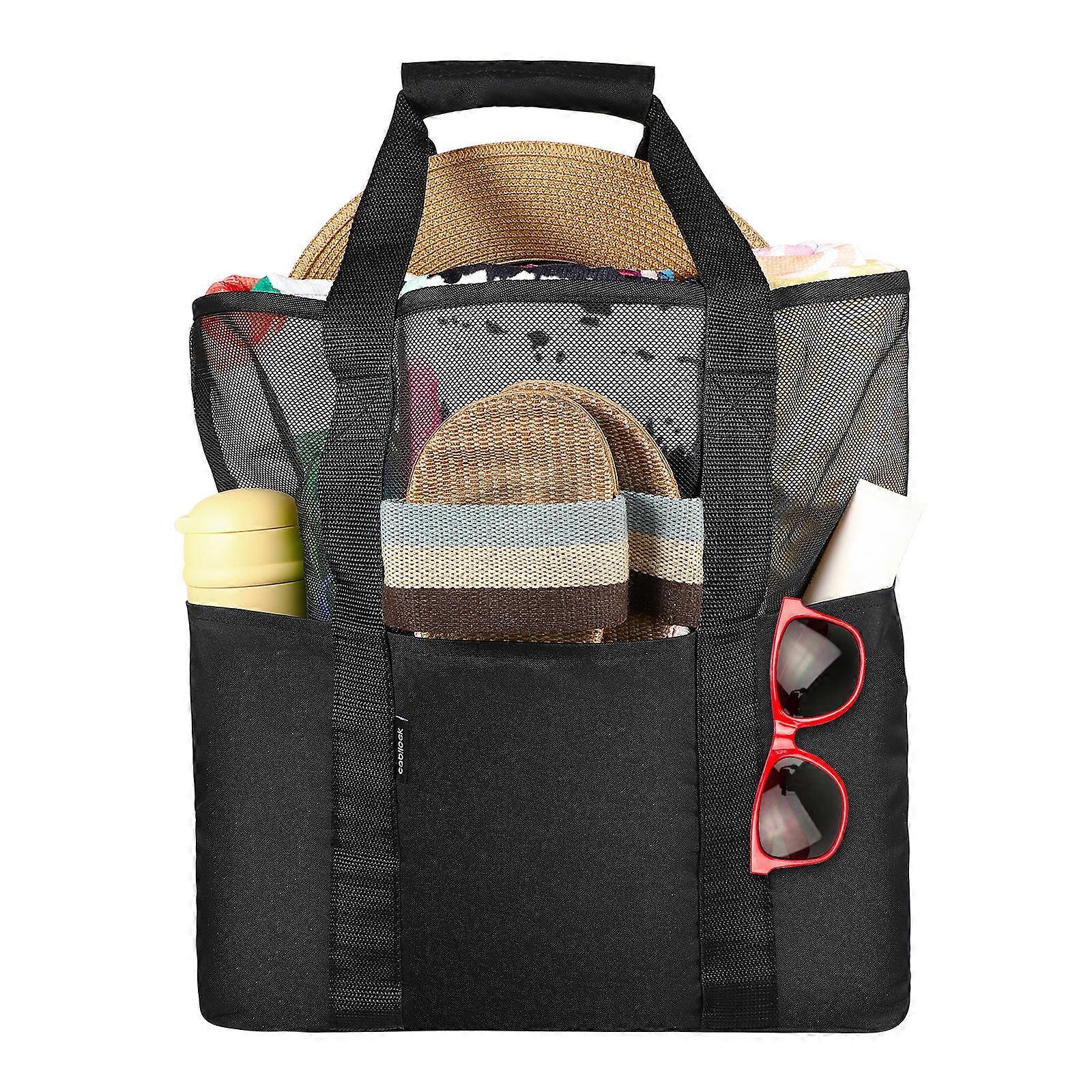 Beach Bag with Pockets Cabilock Mesh Tote Storage Bag 6 Exterior Pockets