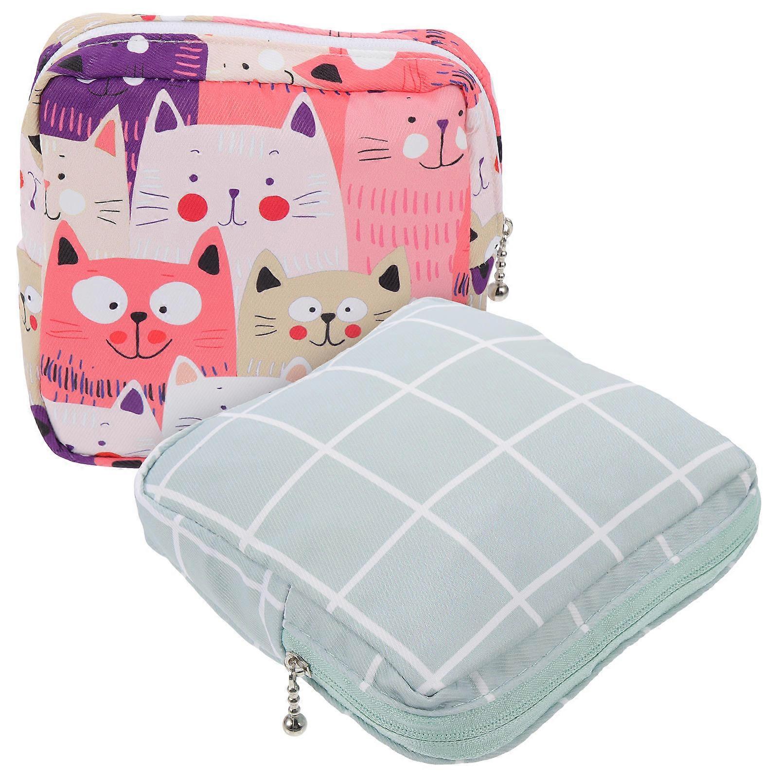 Period Pouch for Girls Sanitary Pad Holder Bag Travel Use Pure Cotton Assorted Color with Privacy Protection 2Pcs