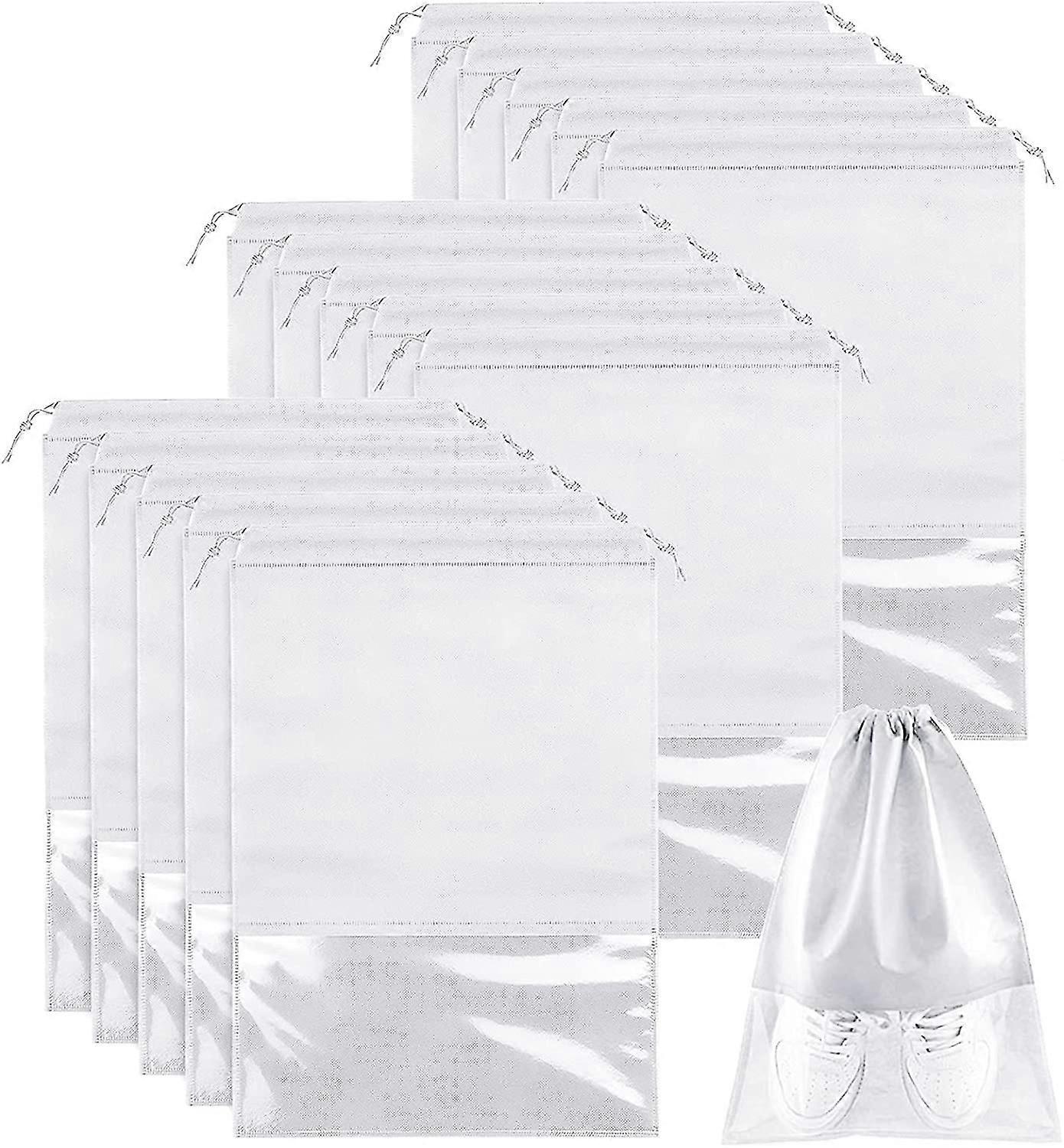 [Intimate design] The travel shoe storage bag has a transparent window to distinguish the contents of the bag. The drawstring design is convenient for picking and placing items and easy to carry. [Durable material] The portable shoe bag is made of high-quality non-woven fabric with thick drawstring, dustproof, mildewproof, wear-resistant, light, soft, washable and quick-drying. [Space-saving bag] The size of the large space-saving storage bag is 32 cm x 44 cm (12.6 x 17.3 inches), which can not only store shoes, but also store clothes, towels or cosmetics. A set of 15 is sold to provide you with more storage space. [Multi-function] The shoe storage bag can separate shoes and clothes to prevent wear and tear. Shoes and bags can also keep your items away from dust, keep them clean, tidy and prevent peculiar smells. [Wide use] The drawstring bag is suitable for family and travel use, and can also be used as a cosmetic bag, travel bag, storage bag, and wash bag to store any items. Keep things in order. Product Features 1. The shoe bag has a transparent window to distinguish it, which can improve your efficiency in finding suitable shoes. 2. Separate dirty shoes from clothing, shirts or other baggage necessities. It can also be used as a cosmetic bag, wash bag, storage bag, etc. 3. The travel shoe bag is made of non-woven fabric with drawstring, which is dust-proof, mildew-proof, wear-resistant, odorless, lightweight, washable and quick-drying. 4. The dust-proof storage bag is an ideal choice for storing shoes for travel, business trip or camping; the off-season shoes in the shoe cabinet are moisture-proof and dust-proof, saving space and keeping the shoes clean. Specifications Material: high quality non-woven fabric Color: as shown in the picture Dimensions: 32 cm x 44 cm (12.6 x 17.3 inches) Package content: 15PCS * Traveling shoe bag Attention: * Due to manual measurement, please allow a difference of 1-2 cm.