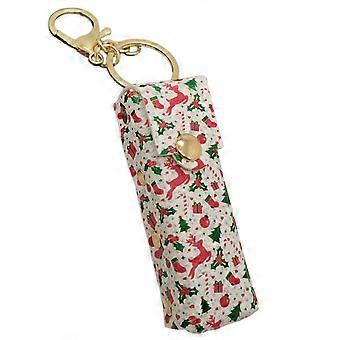 Portable Lipstick Bag Keychain Mini Storage Bag Chapstick Pendant for Women Lipsticks Protective Cover Keyring Handbag White