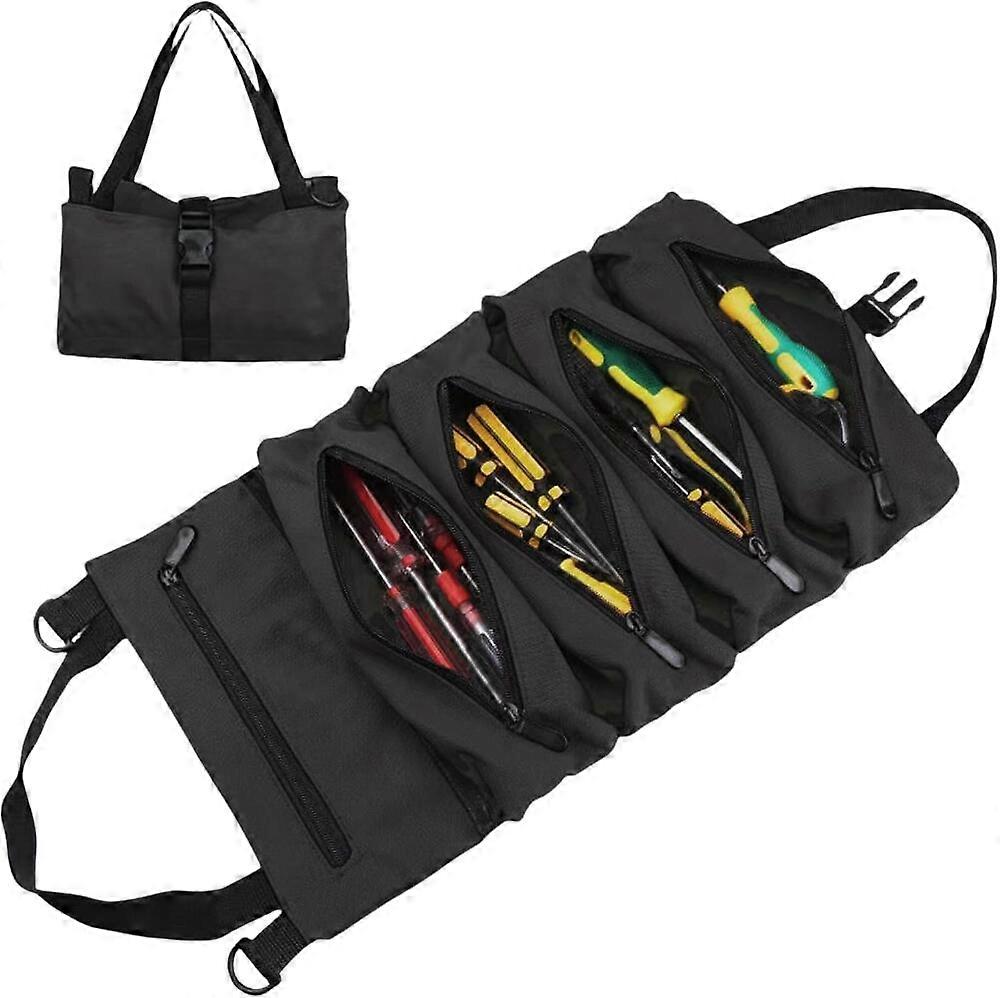Working Tool Bag Roll Tool Roll Multi-Purpose Tool Roll Up Bag Wrench Roll Pouch Hanging Tool Zipper Carrier Tote